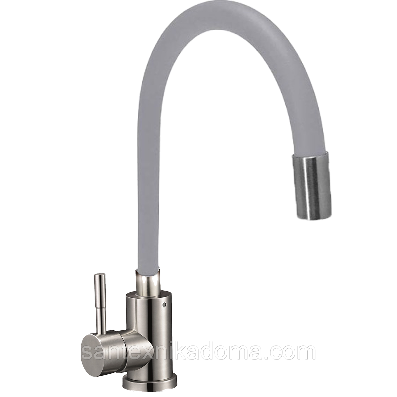 Змішувач на кухню боковий SOLONE EZA4-F090GY з нержавіючої сталі з гнучким виливом. Сірий.